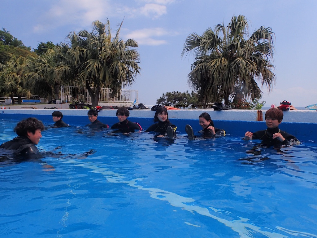 初日は伊豆海洋公園でのプール実習。
