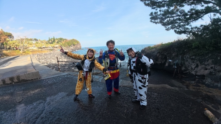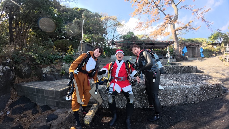 先日、水中に入れられた水中クリスマスツリーがある伊豆海洋公園で、平日組の皆様の潜り納めダイブを担当させていただきました!