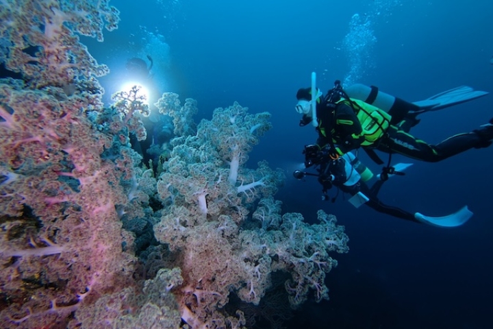 ソフトコーラルの花畑ダイブへ。