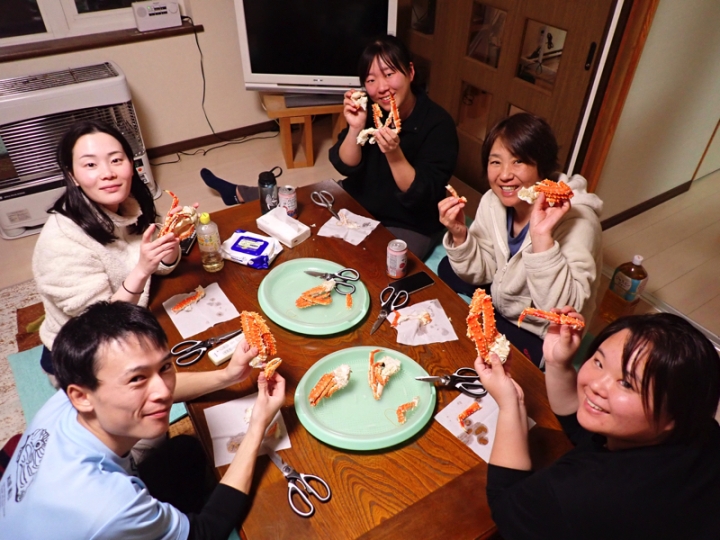 「カニ食べるとみんな黙ってつまんないから、部屋で食べな」