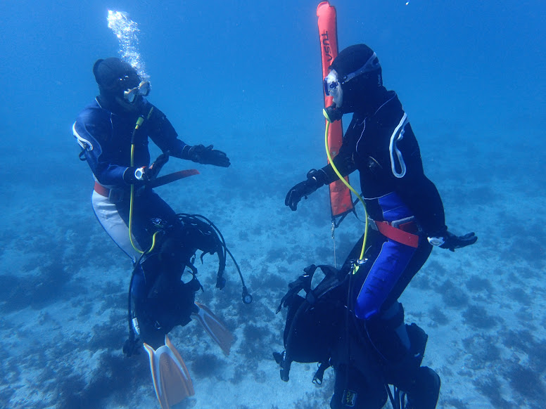 KさんとHさんのレスキューダイバーレベルのスキルトレーンングへ。