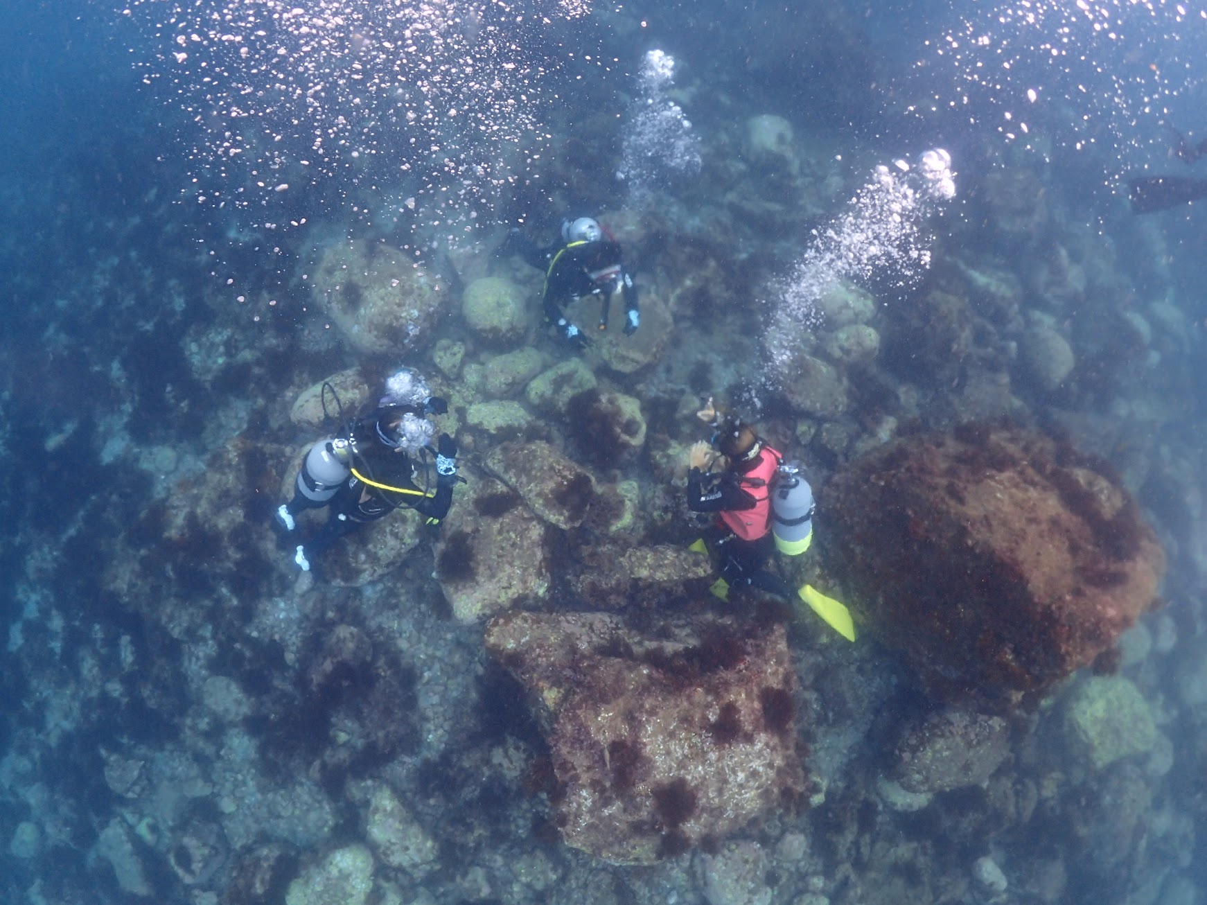 みんなで意見交換をして頂いたり、こちらもダイブマスターの皆様にもご協力いただきガンガン器材を脱いでいただきました。