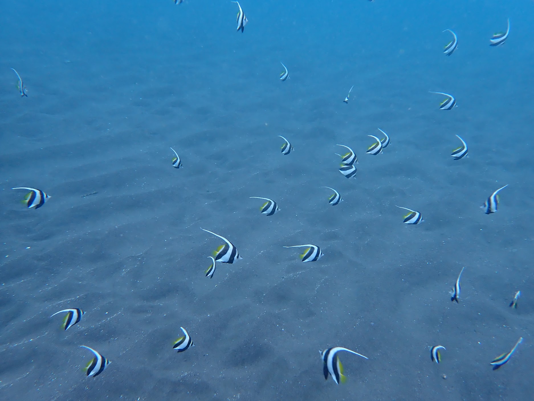 キンメモドキを狙うミノカサゴや、バブルリングで遊ぶキタマクラ達。