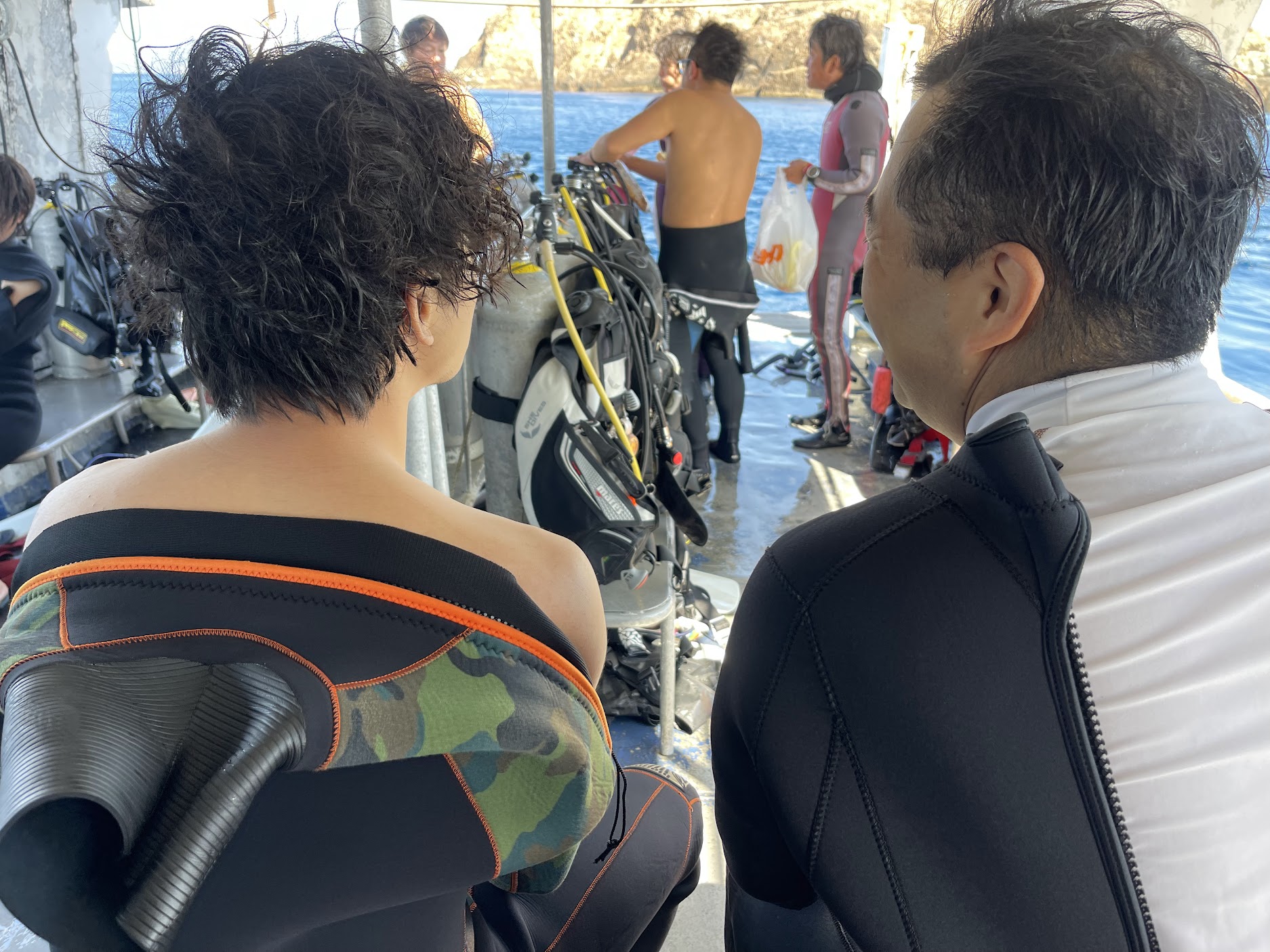 上がった後に、バディになっていた先輩ダイブマスター のSYUNさんとデブリーフィングをされていました。