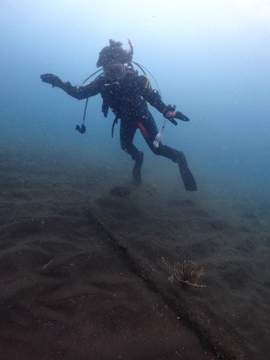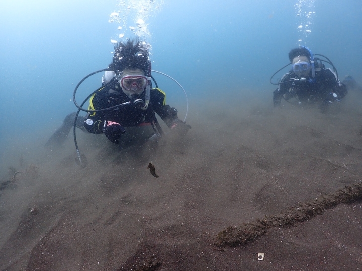 フラットに見える地形なので、気がつくと沈んでしまっている状況にもなりましたが、マイナス浮力になった事に気がつけていらっしゃるので、すぐに中性浮力のチェックをしていましたね!
