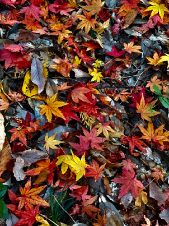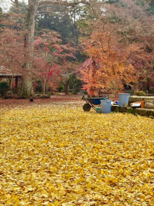 階段を登るとイチョウの黄色い絨毯が敷き詰められ