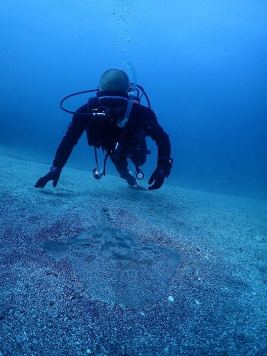 順調でしたので、3本目にはディープ水深に向かいながら、ライセンスコースの時よりもドライスーツの給排気の練習ができるように進めて行きました。