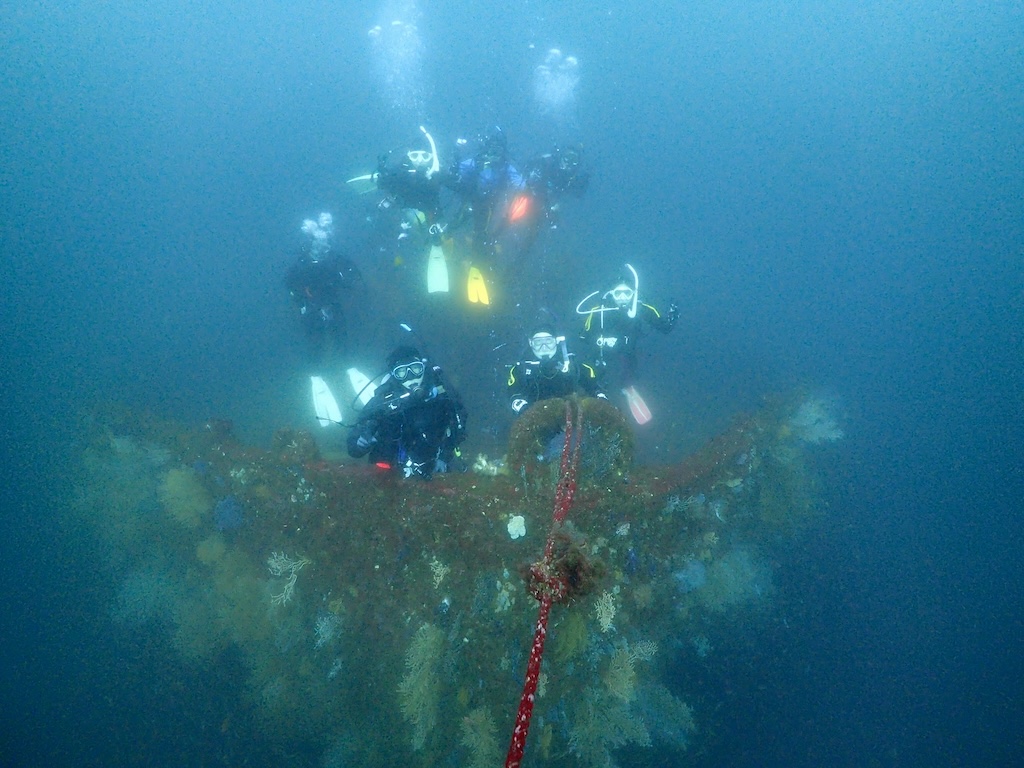 船首も横から見ると、ソフトコーラルの多さが伝わるでしょうか。