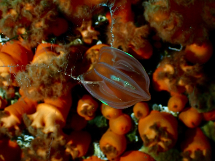 ムール貝に似たイガイの殻に、卵が産み付けられています。