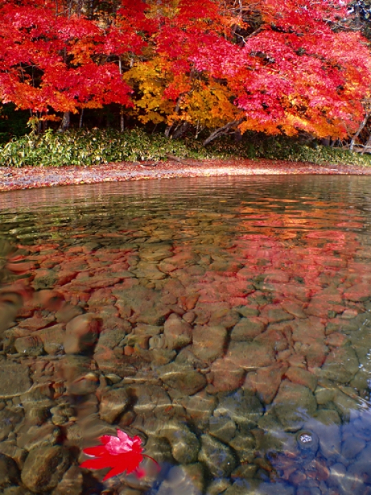 岸にも葉が落ちてて絨毯のようです