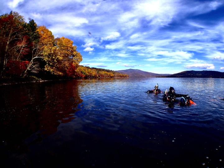 胸いっぱいに吸い込みながらスクーバユニットを