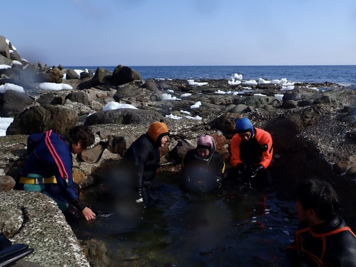 タンクを背負うほどの深さもないということで、スノーケリングでアプローチ。